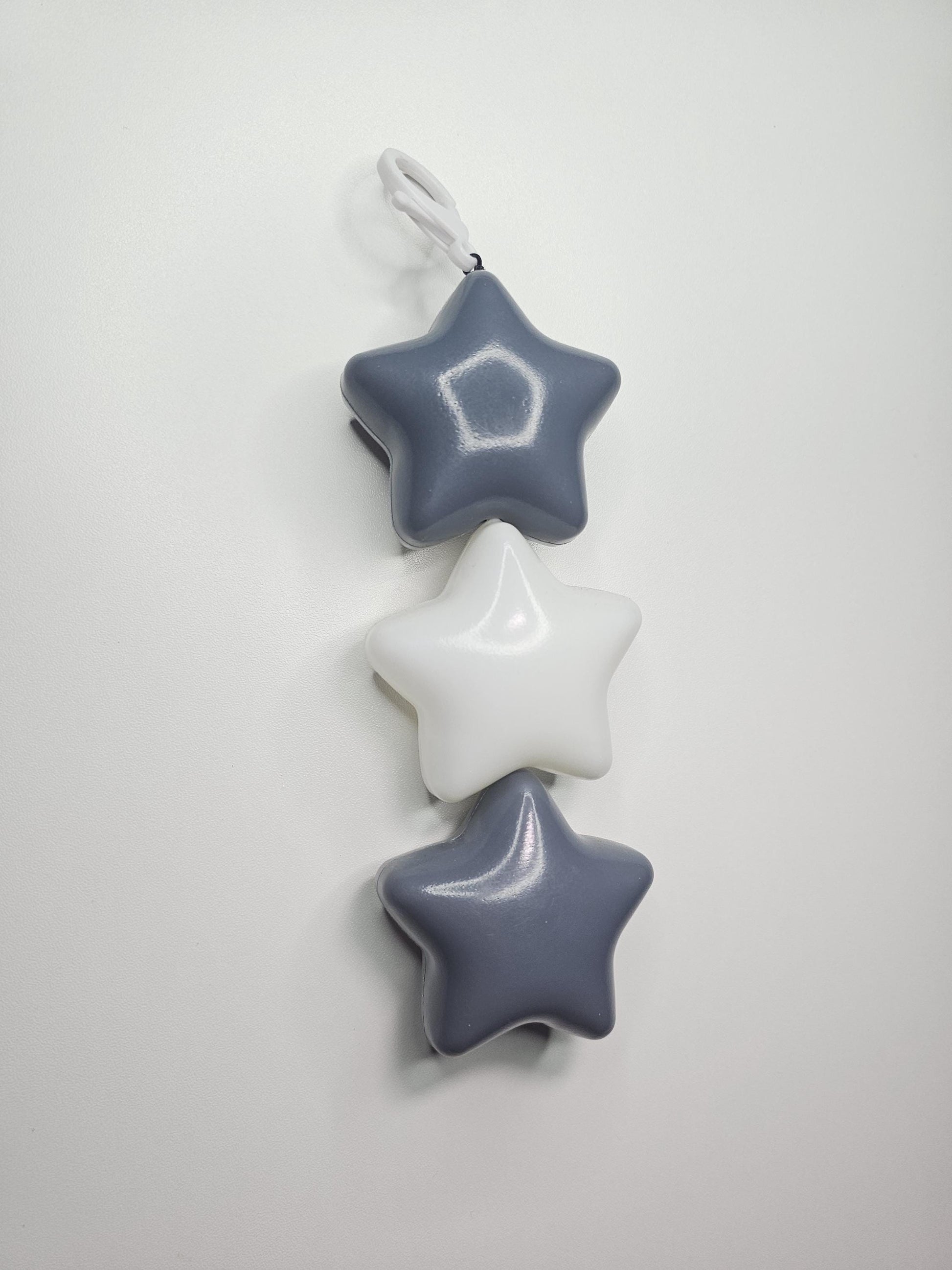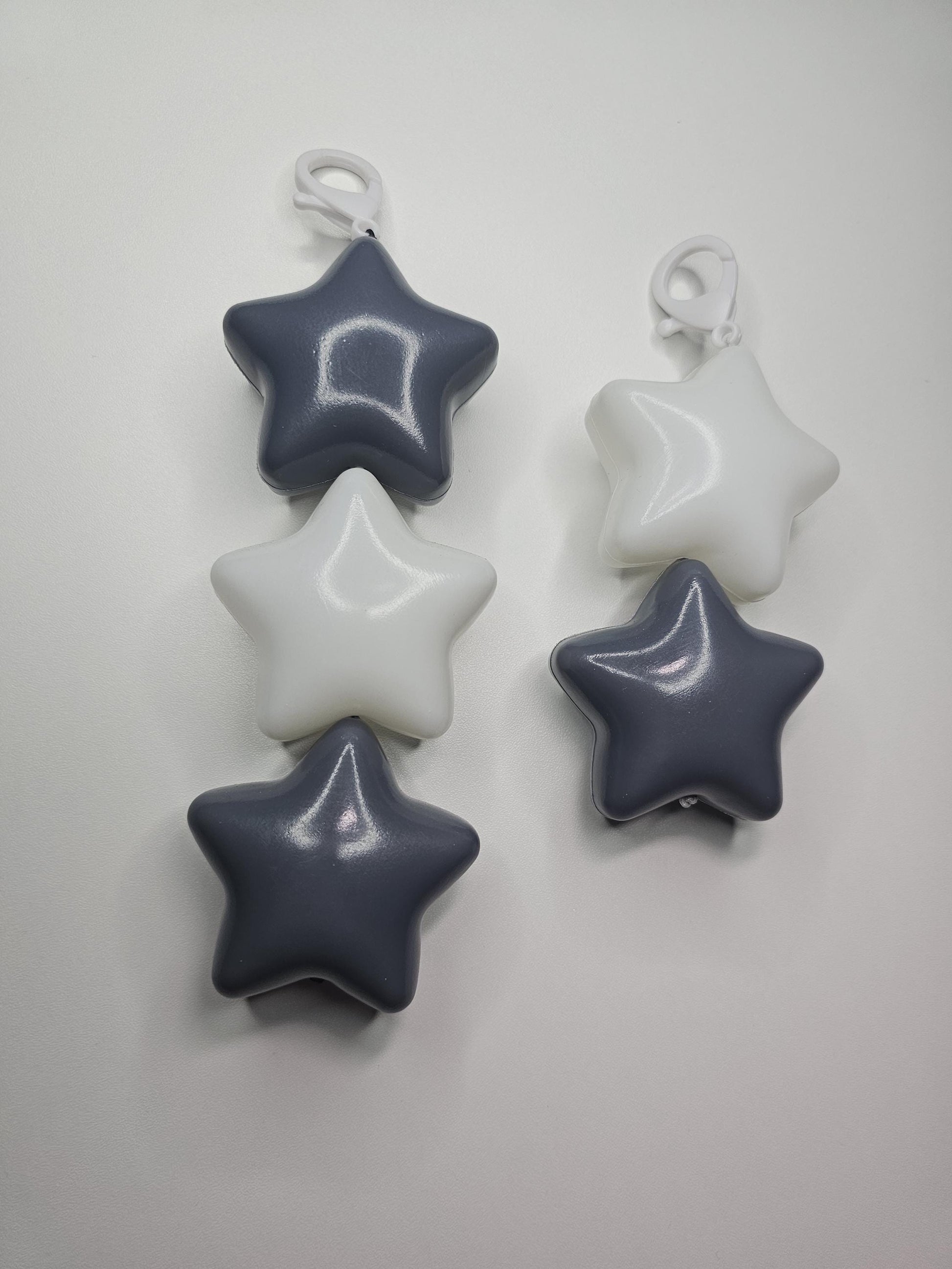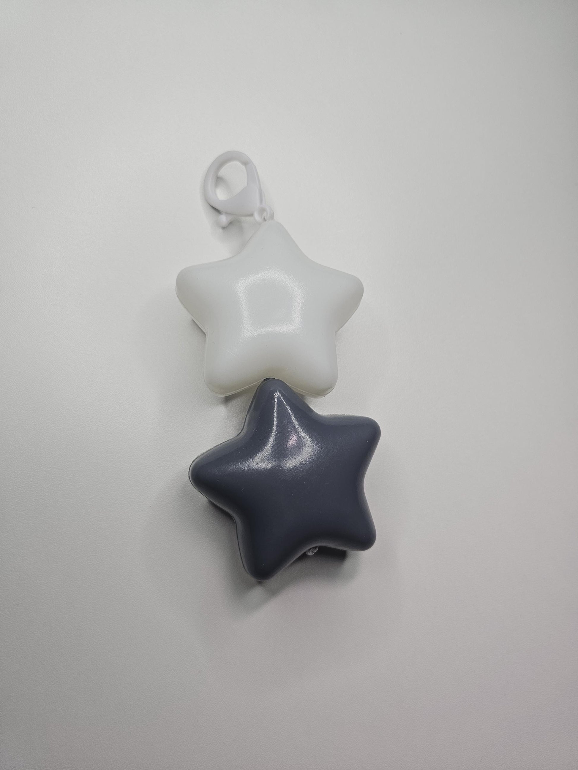 Black, gray, and white Jumbo Puffy Kawaii star keychain / zipper backpack charm. fairy kei, decora, Jfashion, creepy cute